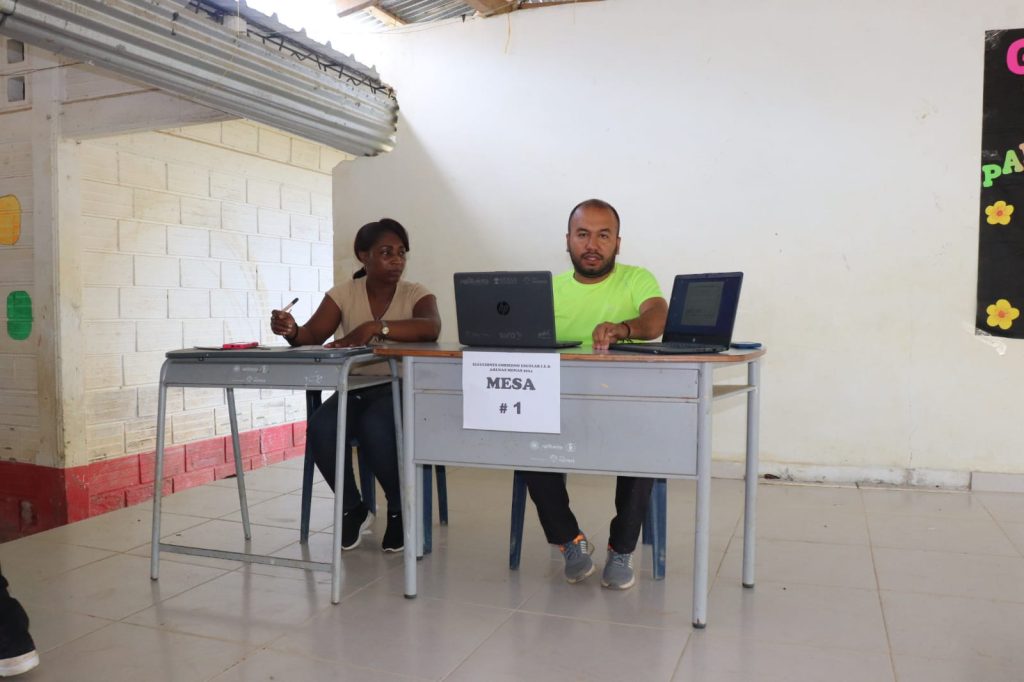 María Angélica Ramos Mora, Juez de Paz identificada con el número 04 en el tarjetón de la sede principal IER Arenas Monas.